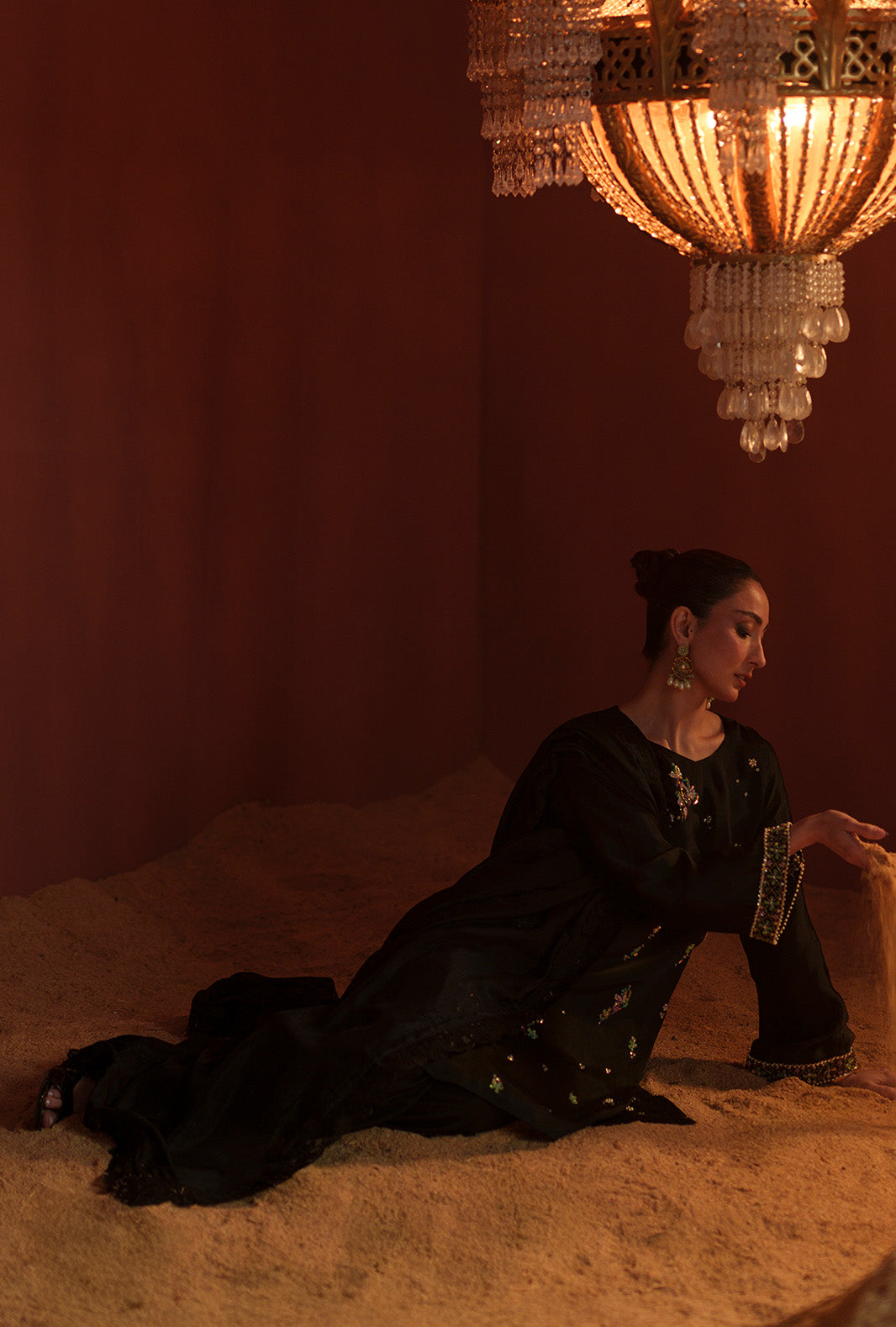 A silk embroidered dupatta completes the outfit with a sophisticated, feminine touch.