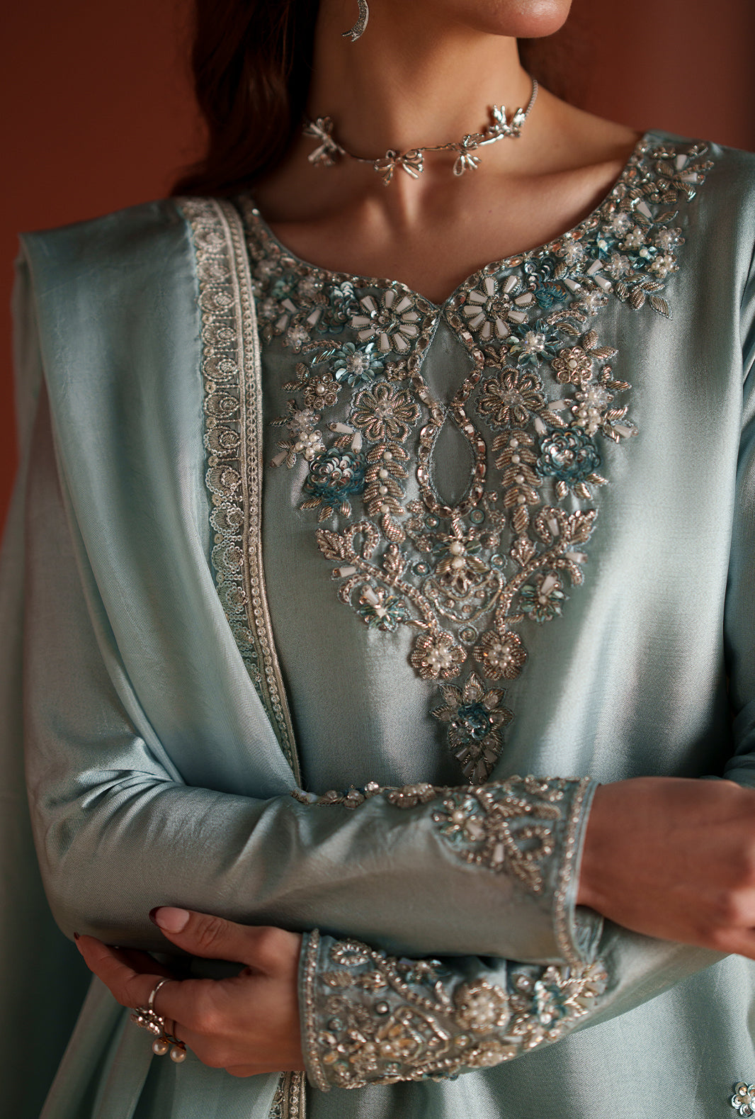 Finished with a silk embroidered dupatta that adds delicate texture and elegance.