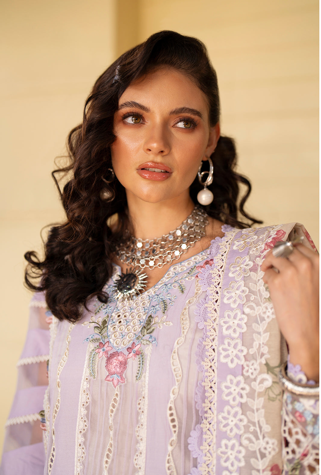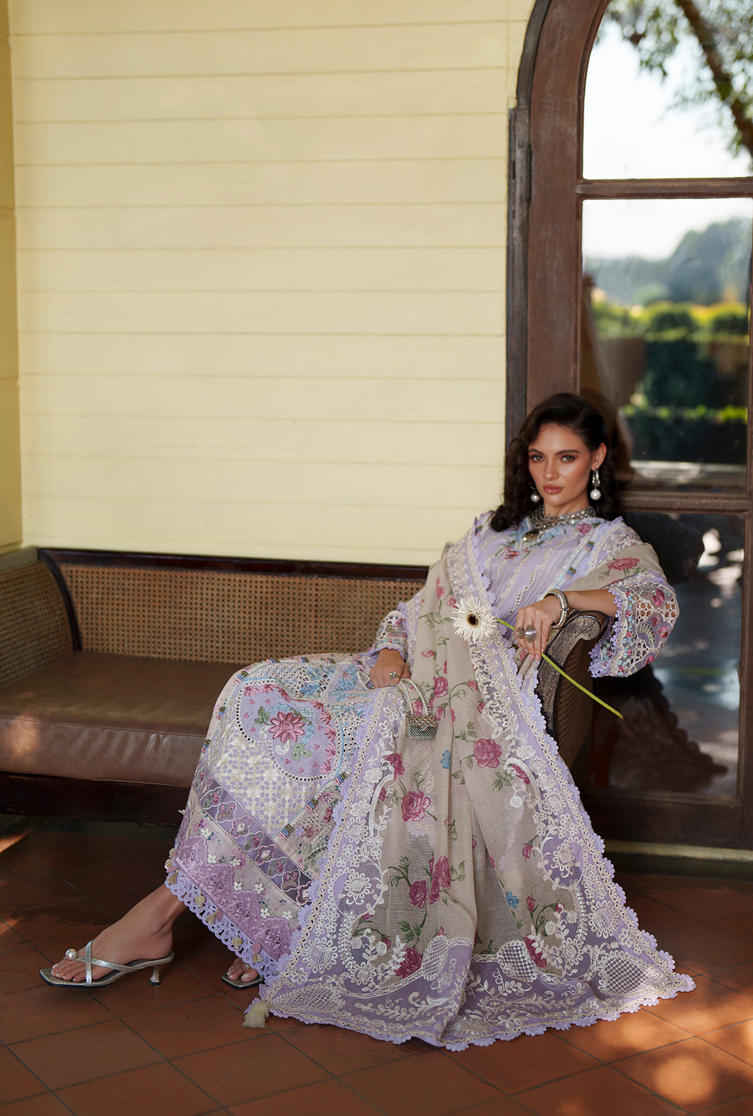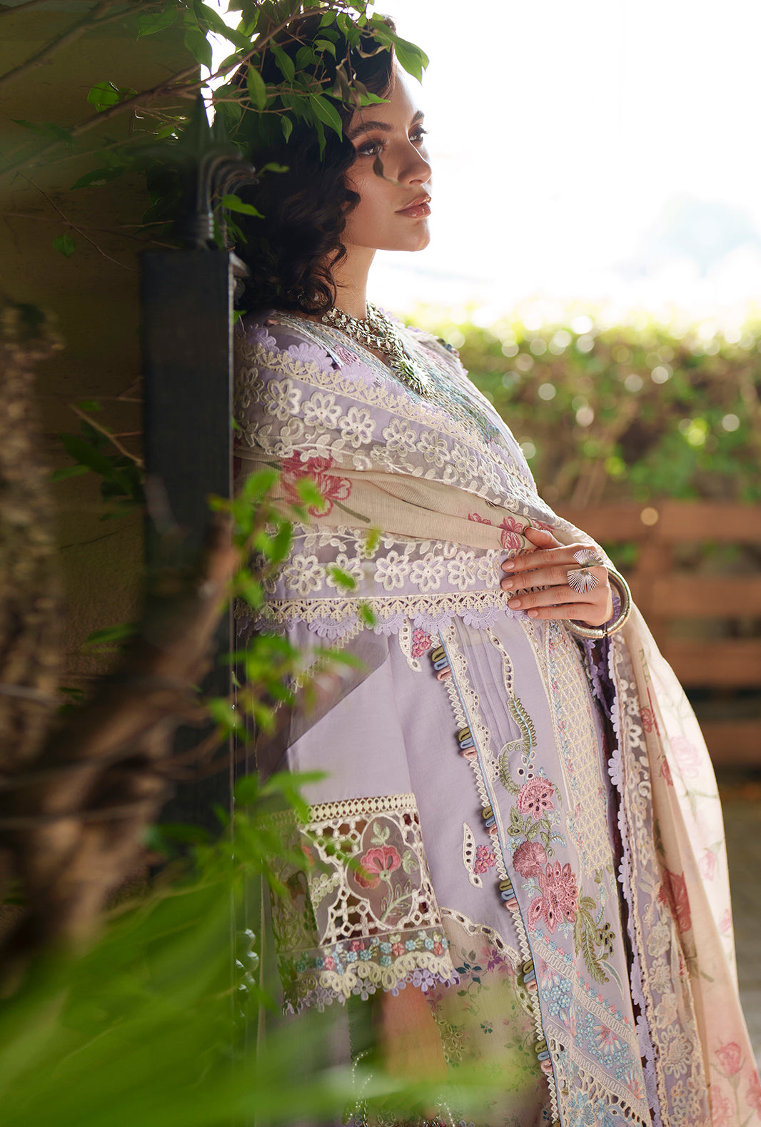 The dupatta, with soft floral hues framed with delicate resham embroidered borders and pallus, adds depth and refined charm.